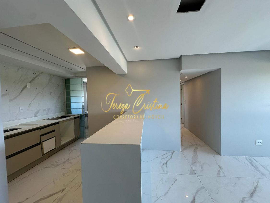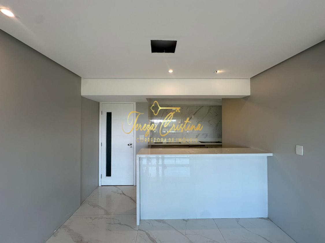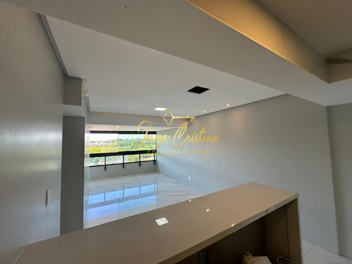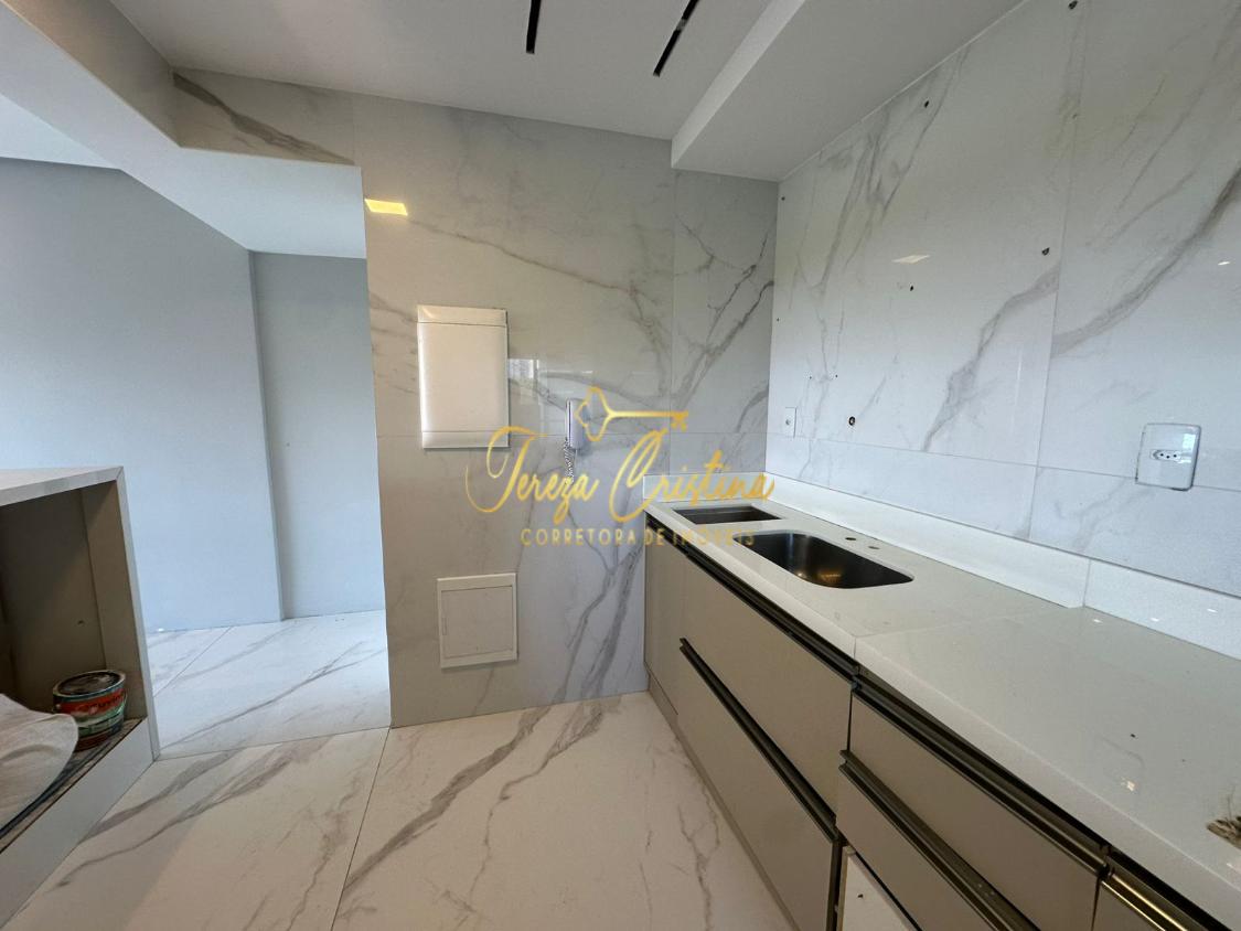 Os acabamentos elevam o padrão do imóvel: porcelanato, rebaixamento de teto em gesso e projeto de iluminação, que valorizam cada detalhe. A cozinha aberta, integrada à sala, reforça o conceito moderno, além de contar com área de serviço funcional.