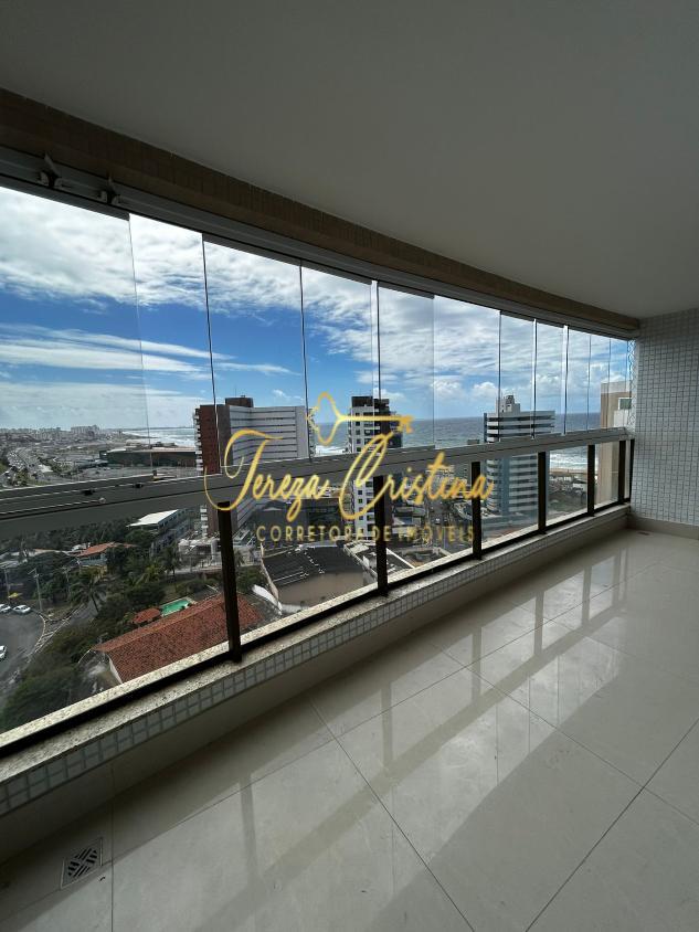 Varanda ampla, com fechamento em sistema Reiki e vista mar, ventilação cruzada